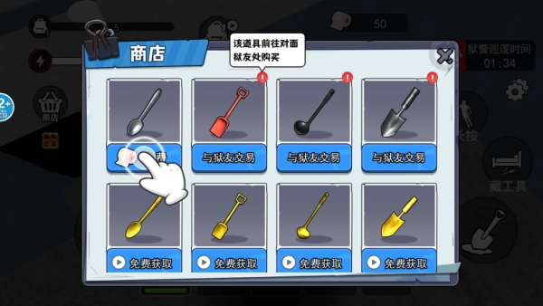 可以在商店里购买各式各样的道具,助力自己挖掘地道实施越狱。