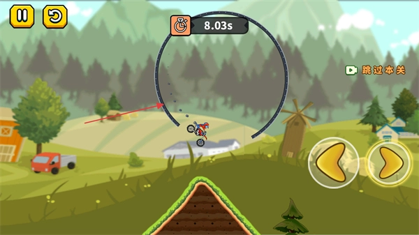 当遇到环形这类特殊地形时,借助前进按钮来维持摩托车的平衡与速度,防止出现翻车或掉落的情况。