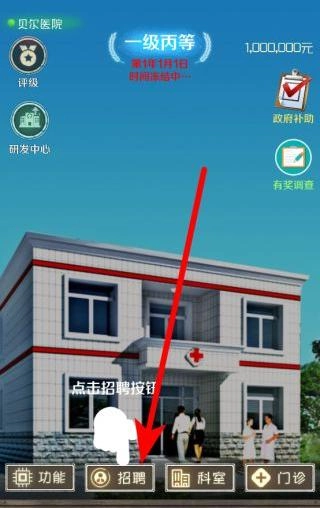 可以点击招聘按钮来招募优秀医护人员,以此充实医院的人力资源,为后续接诊患者等工作提供人员保障。