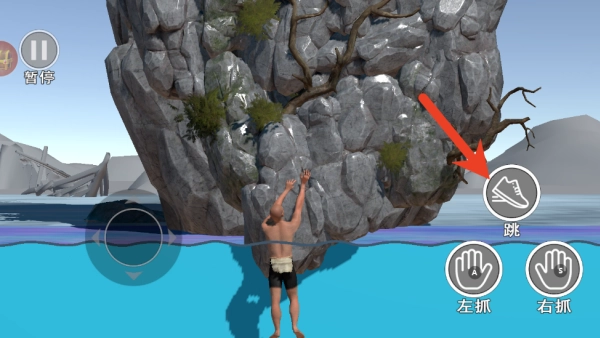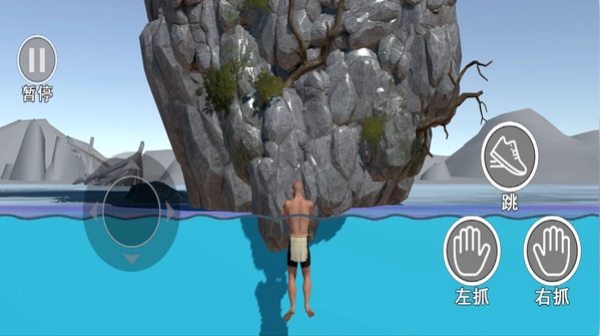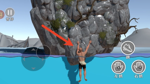 进入游戏后,玩家会操控一名位于大海中央礁石上的角色,首要任务是熟悉最核心的“左抓”和“右抓”这两个虚拟按键的基础操作。