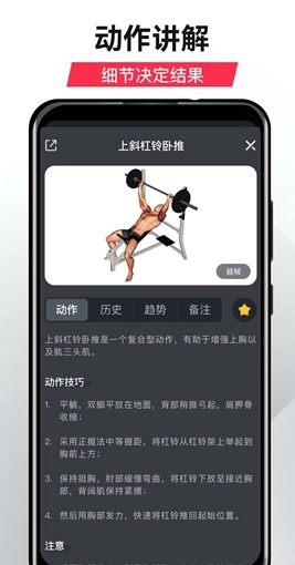 1.【高效记录】可快速记录当下的训练数据,无论是动作、组数、频率,还是热身、递减、超级组等内容,都能轻松覆盖。