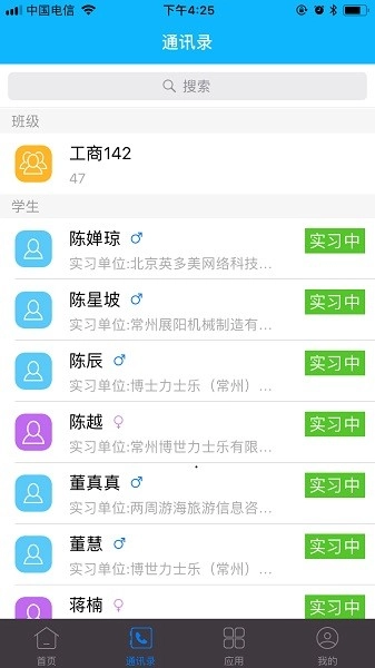 4、通讯录实时更新学生实习状态信息