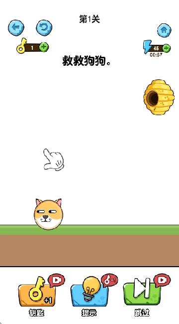 蛰犬蜂潮是一款休闲益智类闯关游戏,核心玩法是通过一笔画线保护狗狗免受蜜蜂攻击。玩家需要画一条线(可成任意形状)来保护场景中的小狗,避免其被蜜蜂叮蛰。蜜蜂会从蜂巢中涌出,若防线被突破,小狗将受到攻击。