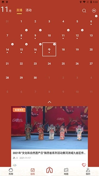 接下来呈现的是软件的日历界面,此界面展示了全国各地文化馆直播活动的排期表。借助该界面,用户既能查阅过往的直播历史内容,也能了解未来一段时期内的直播预告信息,从而便于大家对参与活动的时间进行及时规划。