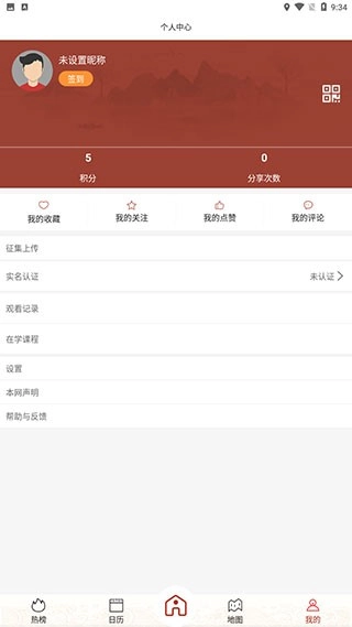 最后是“我的”页面,这里主要展示用户账号的相关信息以及软件的各类设置。用户可以在此完成签到,查看自己的收藏、关注列表、点赞内容、评论记录、观看历史和在学课程,还能进行征集上传、实名认证等操作。
