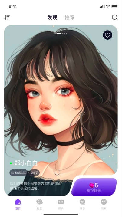 在首页就能浏览系统推荐的网友,遇到心仪的对象就可以主动搭讪聊天