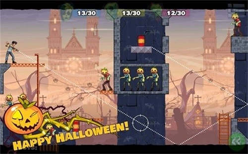 在关卡挑战模式里,我们仅能使用枪械这一种武器,该武器发射的子弹接触到障碍物后会发生反弹,经过一定次数的反弹便会消失。通常在关卡开启前,系统会告知我们本关需要消灭的僵尸种类与数量。游戏内共有三种僵尸,它们除了外观存在差异外,其他方面并无不同,均只需一发子弹就能击倒。关卡开始后,当前需要猎杀的僵尸类型、所需数量以及任务完成进度,都能在屏幕上方清晰查看。我们的目标就是尽可能多地消灭任务指定的僵尸。当完成任务后若还有剩余子弹,就会进入加分阶段,此时射击只需考虑如何能击杀更多僵尸即可。关卡结束后,会依据最终得分来评定星级,最高可获得三星评级。
