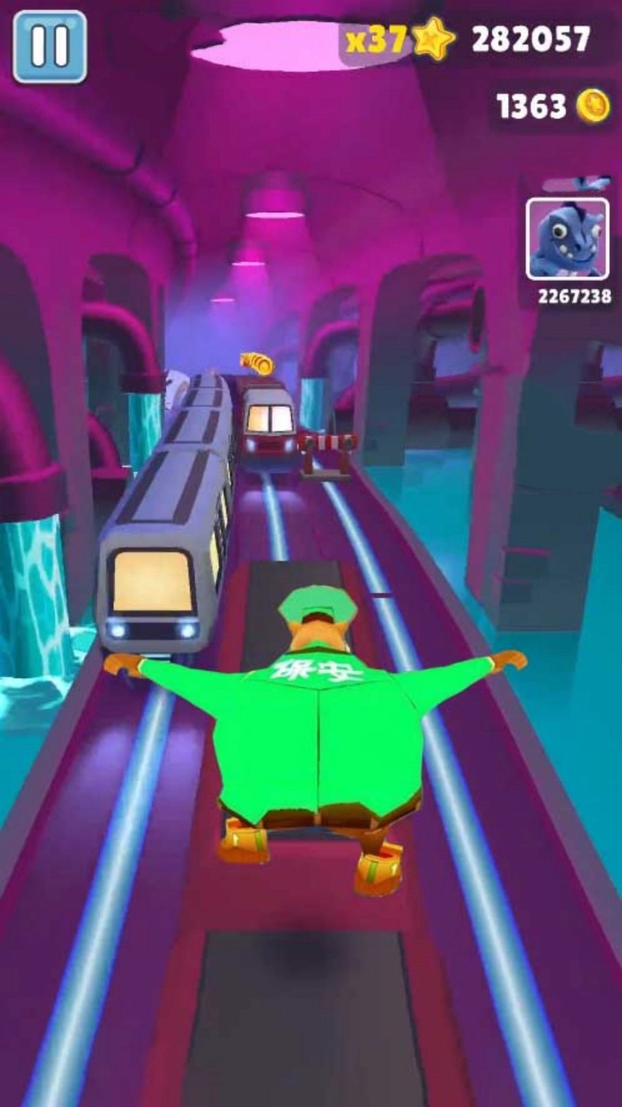 《开心酷跑2》是一款以地铁保安为主角的创新跑酷游戏,核心体验聚焦于高速移动中的瞬时反应与精准资源管理。玩家将化身身手矫健的保安,在纵横交错的地铁轨道网络间飞驰,借助灵活的滑铲与跳跃规避持续坍塌的路段。游戏过程中需收集能量道具以维持极限速度,并在动态随机生成的轨道上不断刷新个人最佳成绩。
