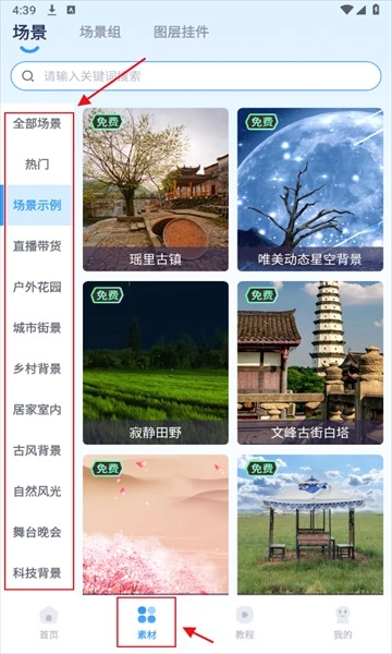 点击下方素材,能够筛选自己需要的素材内容