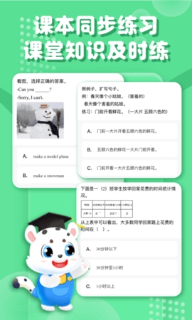 这款软件2万个与课内教材内容同步的动画学习视频,覆盖语文、数学、英语等多学科知识。这些视频能够满足学生课前预习、课后练习以及基础巩固的学习需求。应用内还提供了海量练习题,助力学生轻松备考。此外,软件配备了识字、拼音、口算、听写、听课文等10余个与教材配套的专项辅助学习工具,学生可随时随地利用这些工具进行协同练习,提升学习效率。
