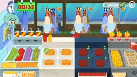 蟹皇堡传奇是B站知名UP主自制的游戏,其创作灵感源自沙威玛传奇。在游戏里,玩家将以蟹黄堡店主的身份,在限定时间内完成顾客的订单,制作出可口的蟹黄堡。游戏中的角色形象都取材于《海绵宝宝》动画,玩家能看到海绵宝宝、章鱼哥、派大星和蟹老板等经典角色。