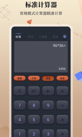 这款计算器具备历史纪录功能,方便用户随时查阅过往计算记录。除了高效的基础计算能力外,其科学计算模式还支持三角函数运算、弧度制转换以及各类数学常量调用等专业计算需求。无论是日常简单的数字运算,还是专业领域的复杂计算任务,它都能全面满足用户的使用需求。