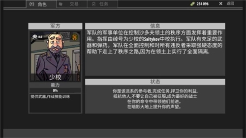 2、可以看到有军方、维和士兵、掠夺者、机械修理师这四种商人。