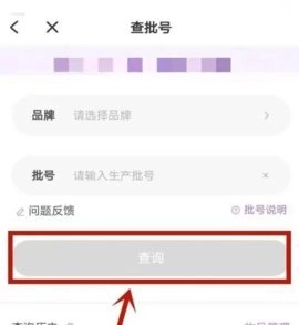 2.进入批号查询界面后,输入需查询的品牌名称与产品批号,接着点击“查询”按钮。