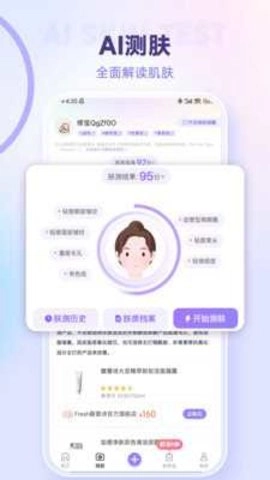 1.智能拍照测肤功能:借助深度学习检测算法,可精准识别16种不同肤质,分析出皮肤的干油状态、皱纹情况、痤疮问题、色斑分布等属性特征,并针对性地提供适配的肤质改善产品与解决方案。