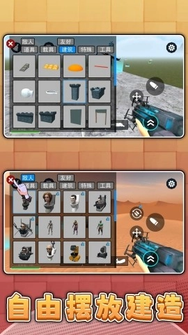 包含自由摆放建造系统,可按需搭建防御工事、布置道具,建造成果直接影响战局,让战斗兼具射击爽感与建造乐趣。