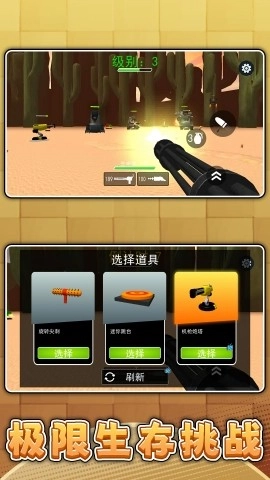 在道具界面选择旋转尖刺、机枪炮塔等道具,合理布置在关键位置,构建防御体系,辅助抵御敌人进攻,降低战斗压力。