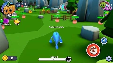场景里的苹果之类的物品都是重要资源,靠近它们并发起攻击,就能获取用于升级的经验。