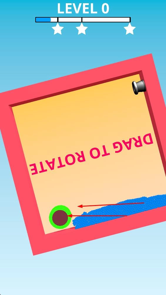 通过拖拽旋转游戏场景,这是引导蓝色液体流向目标的关键操作。