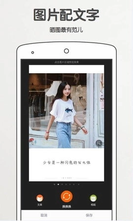 1.拍照结束后,能够对图片进行加工,搭配更具时尚感的文字元素。