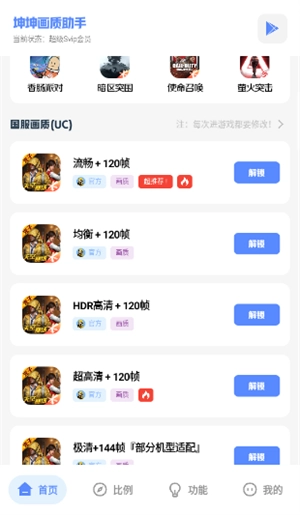 坤坤画质pro是一款功能强大的手机游戏画质优化工具,它能依据手机的硬件参数智能适配最理想的游戏分辨率与帧率,让低配机型也能体验超高画质。此外,该软件支持多种游戏画面比例,能完美适配平板等设备。若想畅快游玩喜爱的游戏,就来本站获取吧!