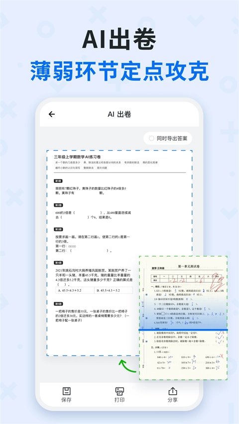 智能处理试卷精准度高,无需手动裁剪或涂改,可轻松还原空白卷,大大节省整理试卷的时间与精力。