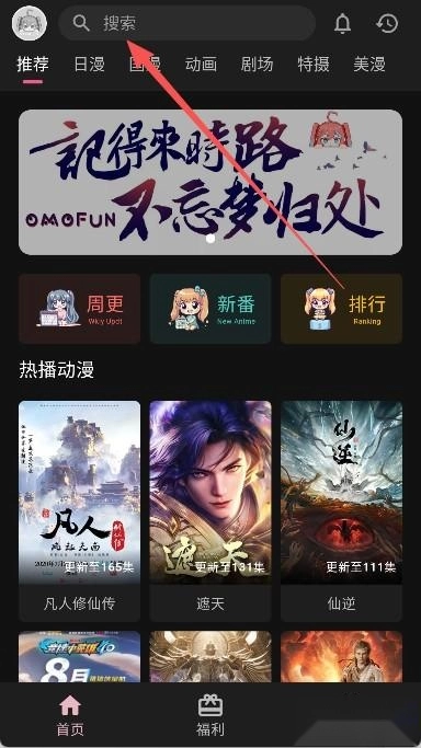 在手机上启动omofun复活版应用,随后进入其主界面。