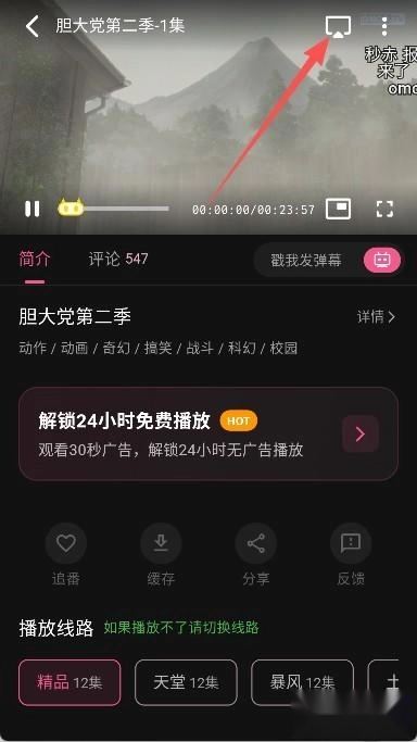 紧接着会进入播放详情页面,点击右上角的“TV”按钮。