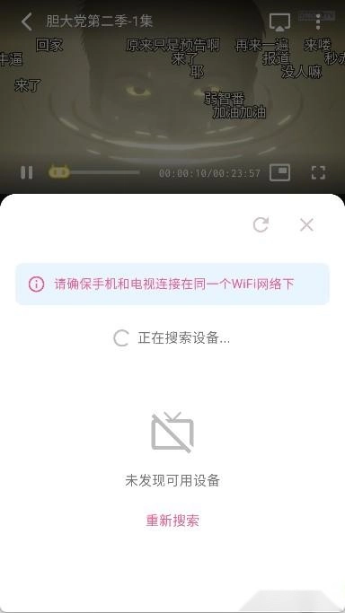系统会自动搜索到同一网络下的智能电视设备。