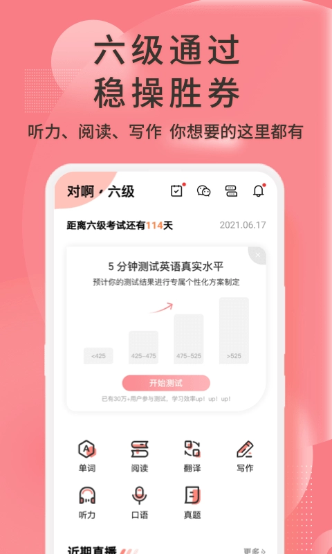2、英语六级君配备了海量题库,涵盖丰富的真题与模拟题,能助力你在备考过程中通过持续刷题,精准弥补自身知识短板。
