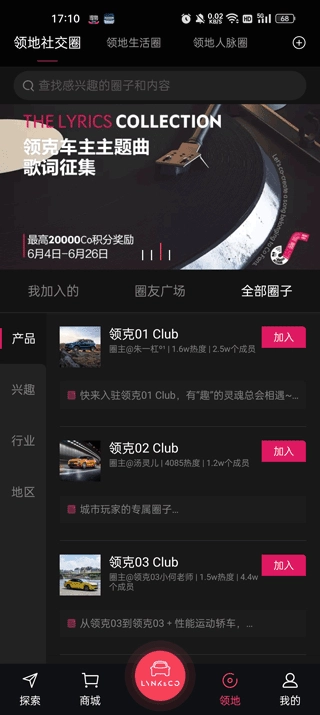 LynkCo是专为领克汽车车主打造的智能控车服务软件,也被称作领克汽车。在这里,用户能通过手机实现与汽车的互联,还可以浏览丰富的汽车资讯,遇到心仪的新款领克汽车时,也能在线进行购买。对于已拥有领克汽车的用户而言,可借助这款软件远程控制车辆,比如启动车辆、锁车、开锁等操作。另外,要是遇到汽车相关问题,还能在汽车论坛和社交圈里与他人讨论交流,获取相关知识!