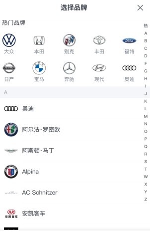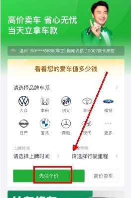 2、选择我们的车辆品牌、车型、上牌时间、行驶里程等