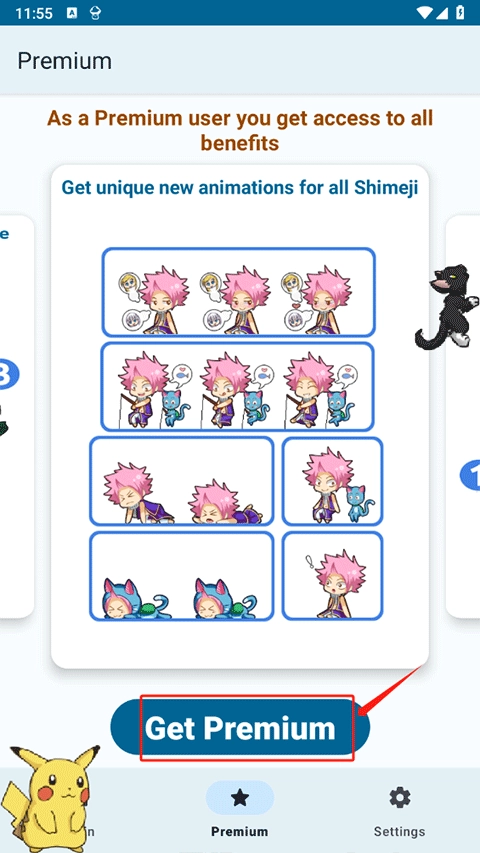 shimeji桌宠初始设有6个格子,其中仅2个格子可免费使用。若想解锁更多格子,只需在Premium界面升级至高级版即可实现。