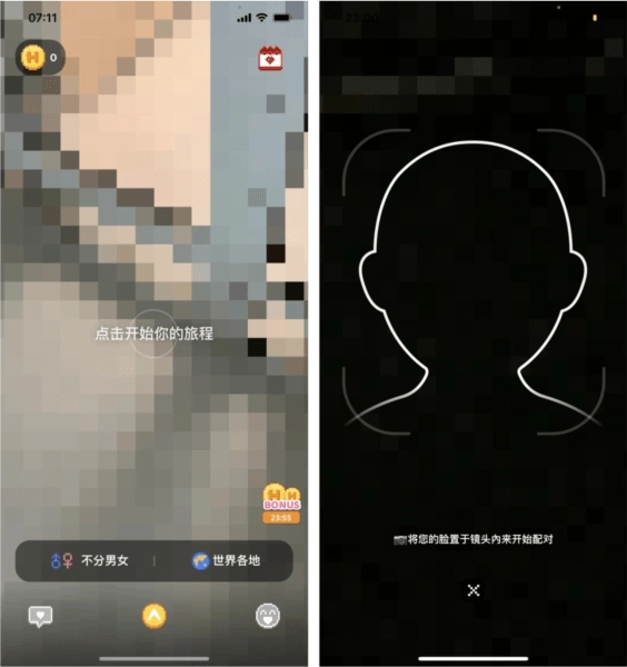 视频匹配,需要将自己的脸至于镜头内才可开始