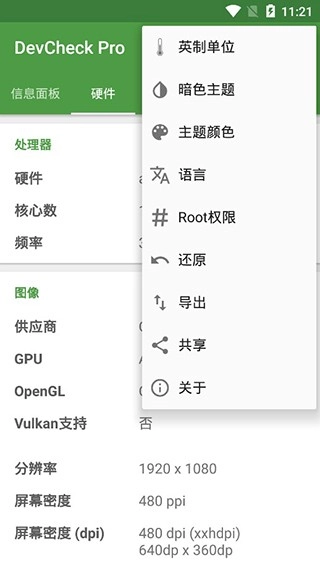 支持查看系统信息。系统版本号、内核、根权限、架构、指令集、设备制造商、主板、ID、序列号等信息都十分全面,在同类型通用软件中难寻对手。