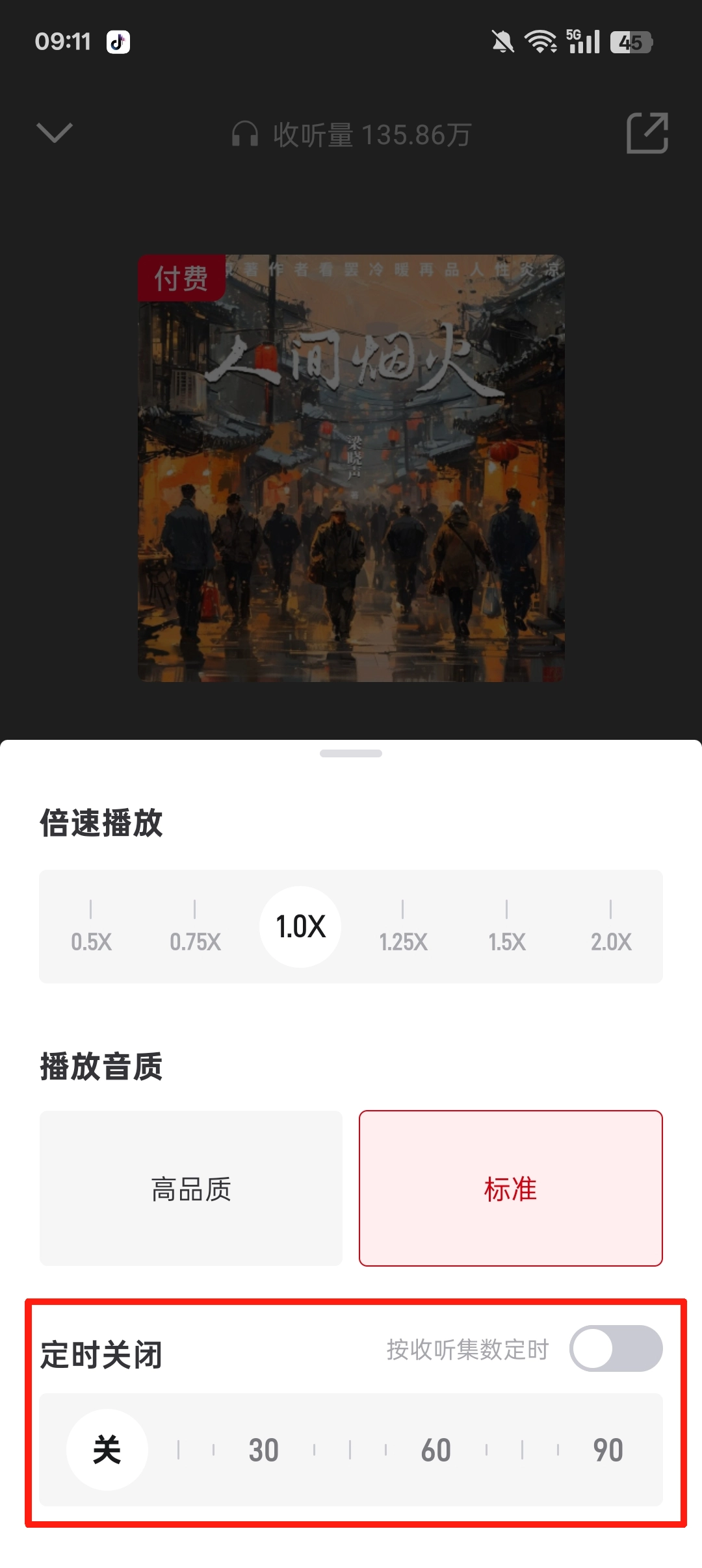 然后点击开启定时播放,既可以按时间来设置定时,也能够按照集数进行定时。