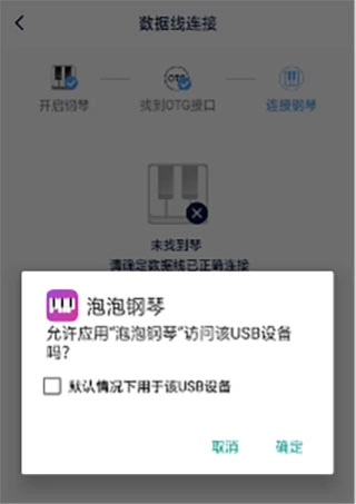 将数据线接好手机和钢琴后弹出提示即连接成功。