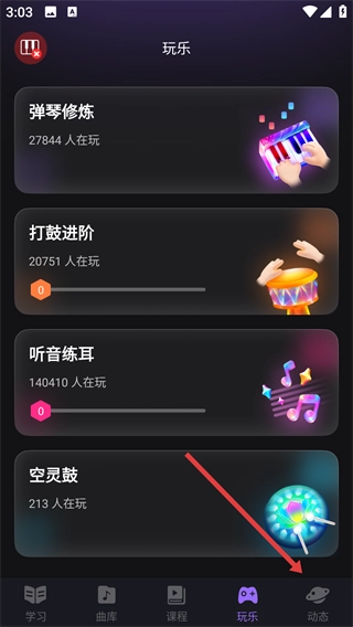 在底部点击“动态”选项,切换到动态页面。