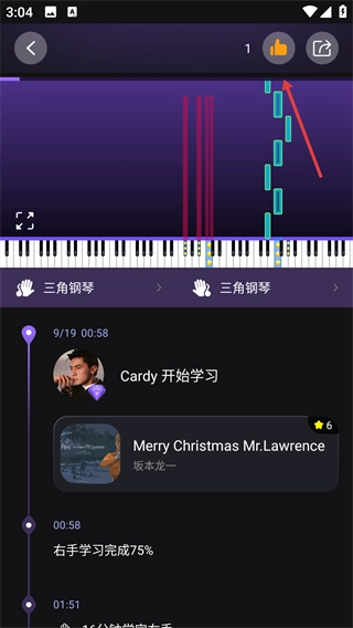 我们的教学模式独具特色,你只需跟着屏幕上落下的粉红色光标提示来练习,哪怕毫无基础,也能快速掌握一首钢琴曲。