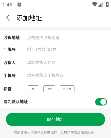 最后在添加地址的页面,按照要求填写好详细信息后,点击【保存地址】按钮就可以了。