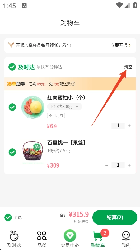 百果园如何清空购物车