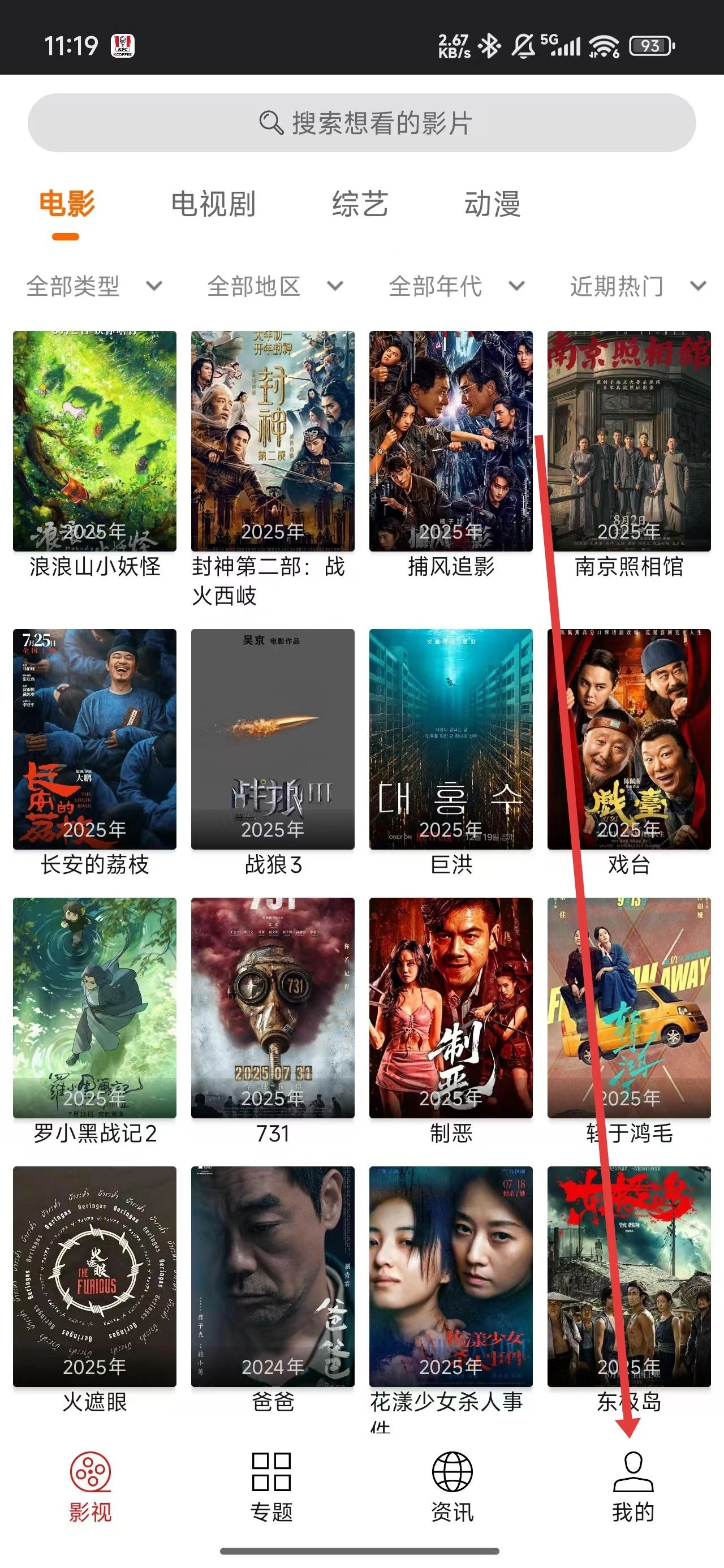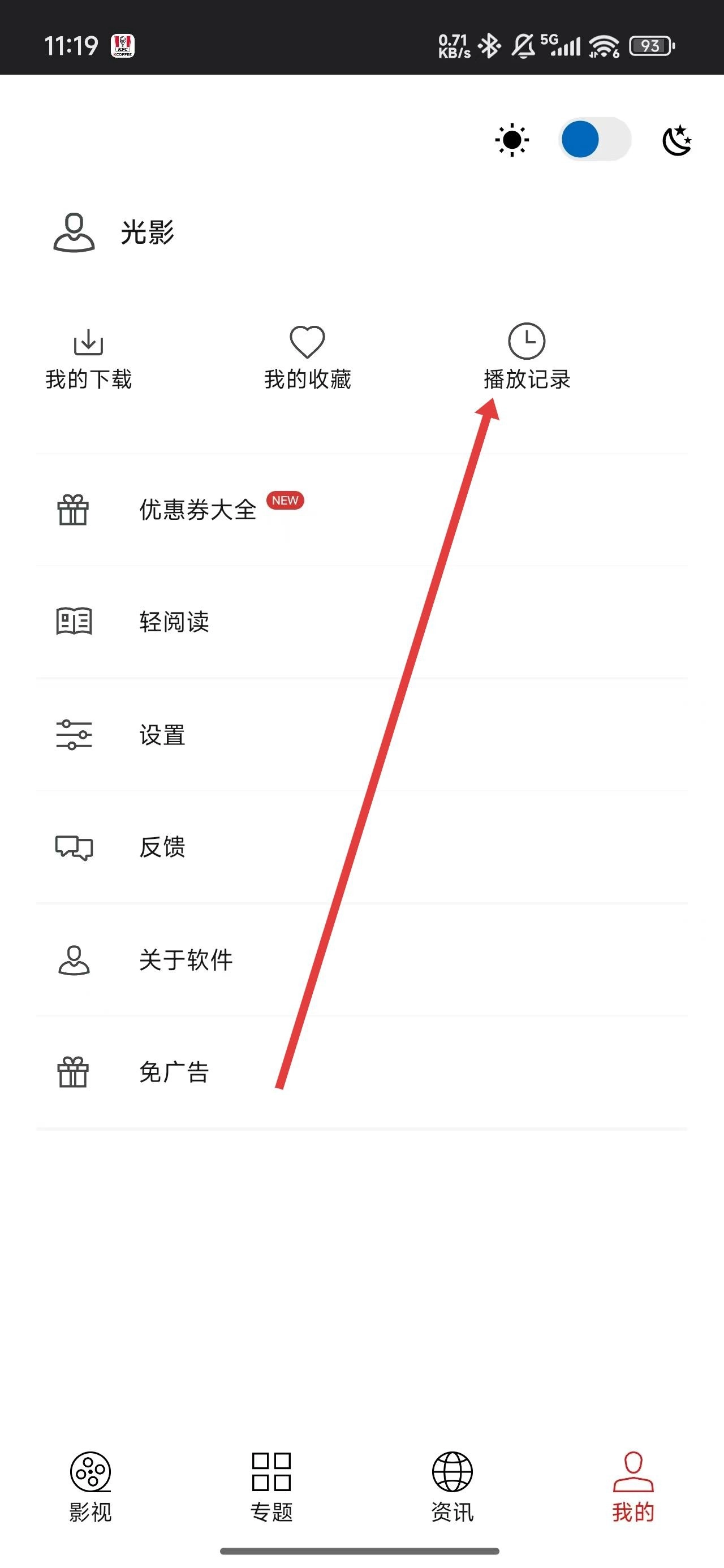 进入光影追剧首页后,点击下方的“我的”按钮,就能进入个人主页。
