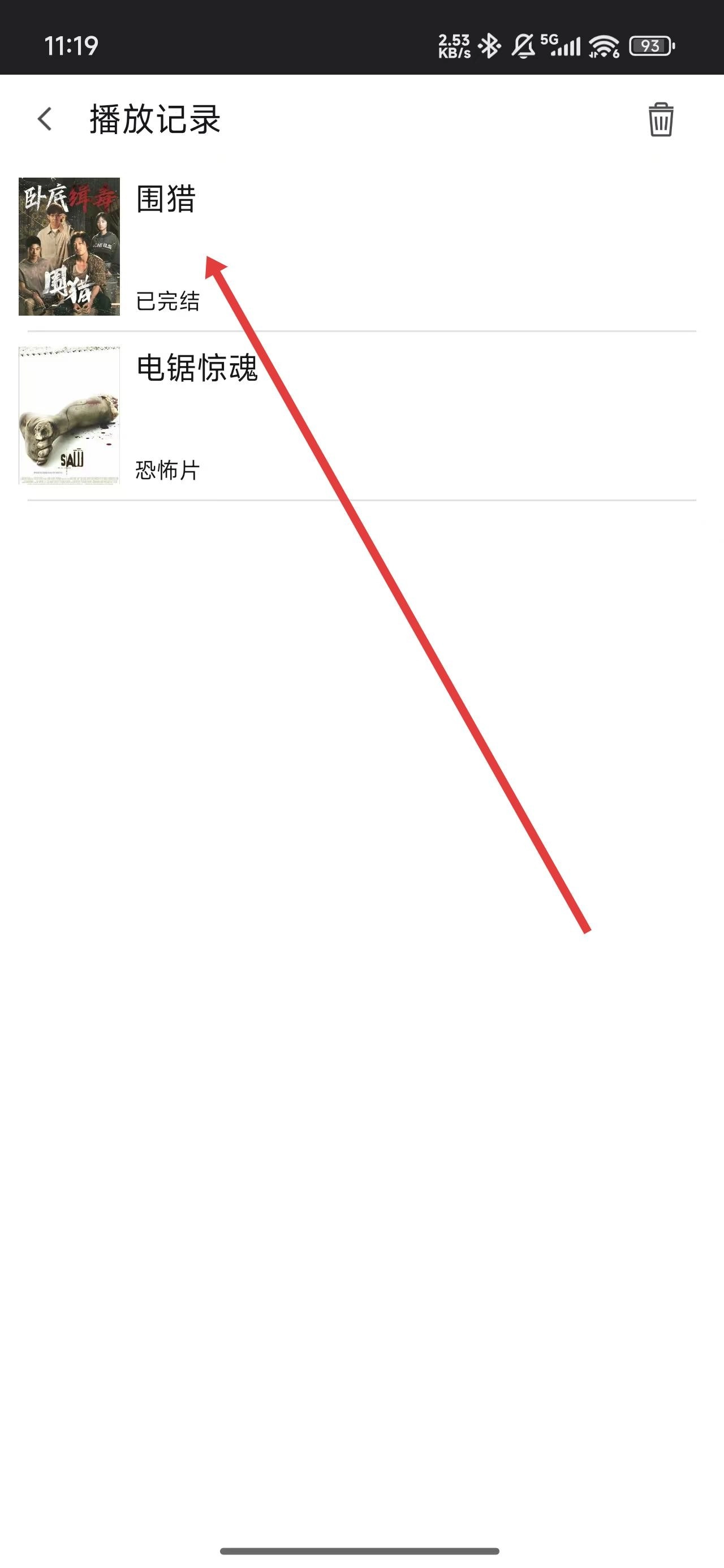进入播放记录页面后,可点击选择“围猎”进行观看。