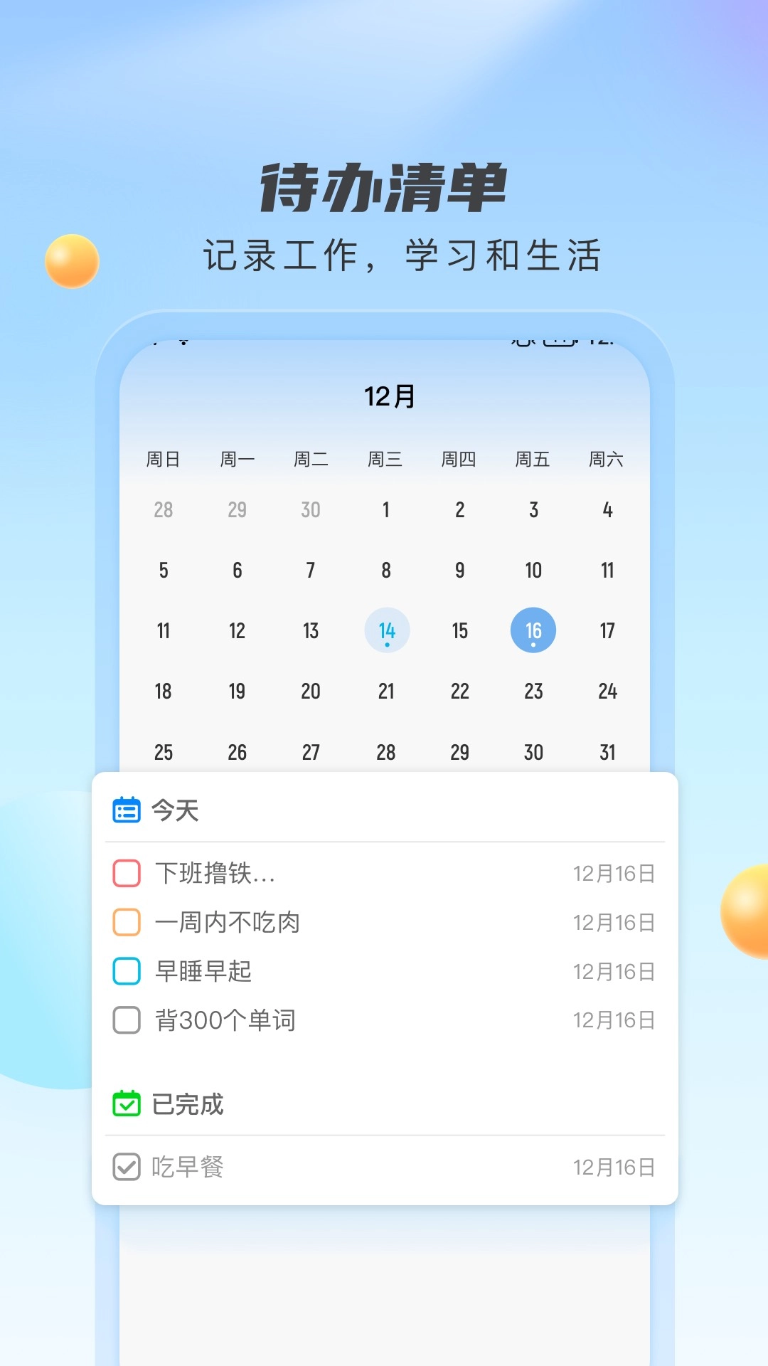 各种待办事项可随时记录,还能根据自身需求灵活添加,帮助大家简化工作步骤。