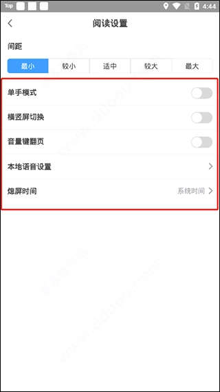 更多设置可以开启音量键翻页等。