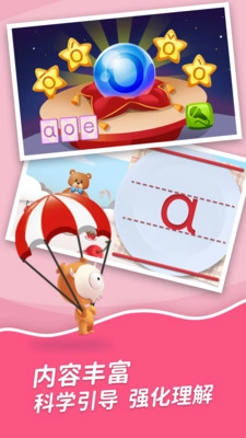 随时都能免费体验各类有趣的游戏,在玩游戏的过程中学习拼音,拼音学习也会为你的游戏体验提供助力。