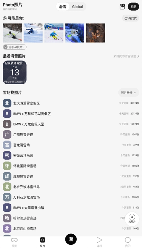 【照片墙】覆盖数百万张国内外雪场、会所、活动的高清照片;