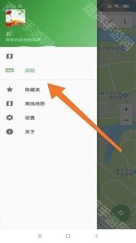 使用测距功能时,点击地图左上角的对应图标,选择测距选项后,在地图上任意选取两个地点,即可测算出这两地之间的距离。