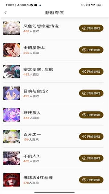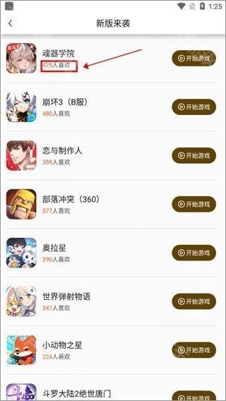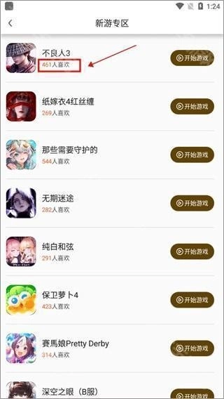 4、点击“新游专区”就能查看近期上线的各类新游戏,同时也能了解到有多少玩家喜欢这些游戏。