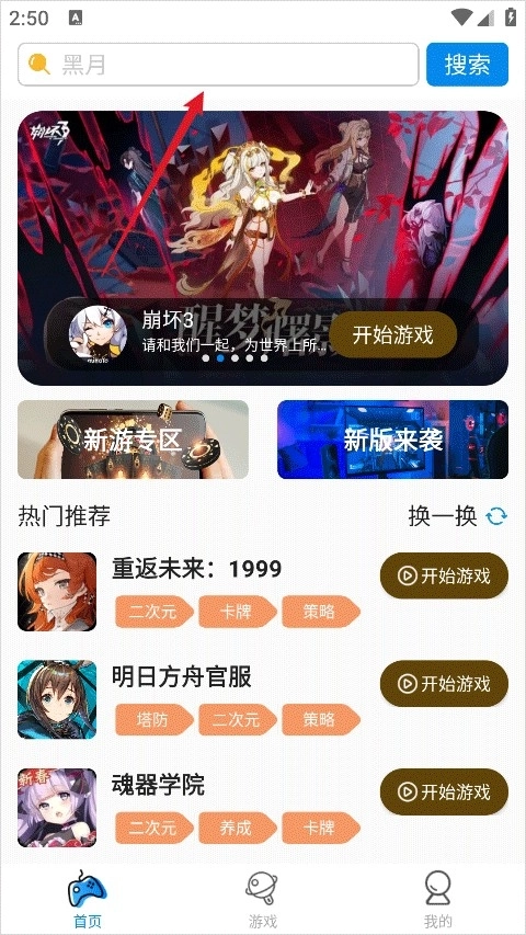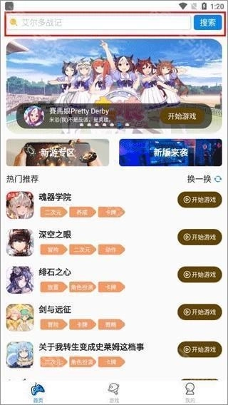 2、用户能够点击顶部的搜索框,查找自己希望试玩的游戏。